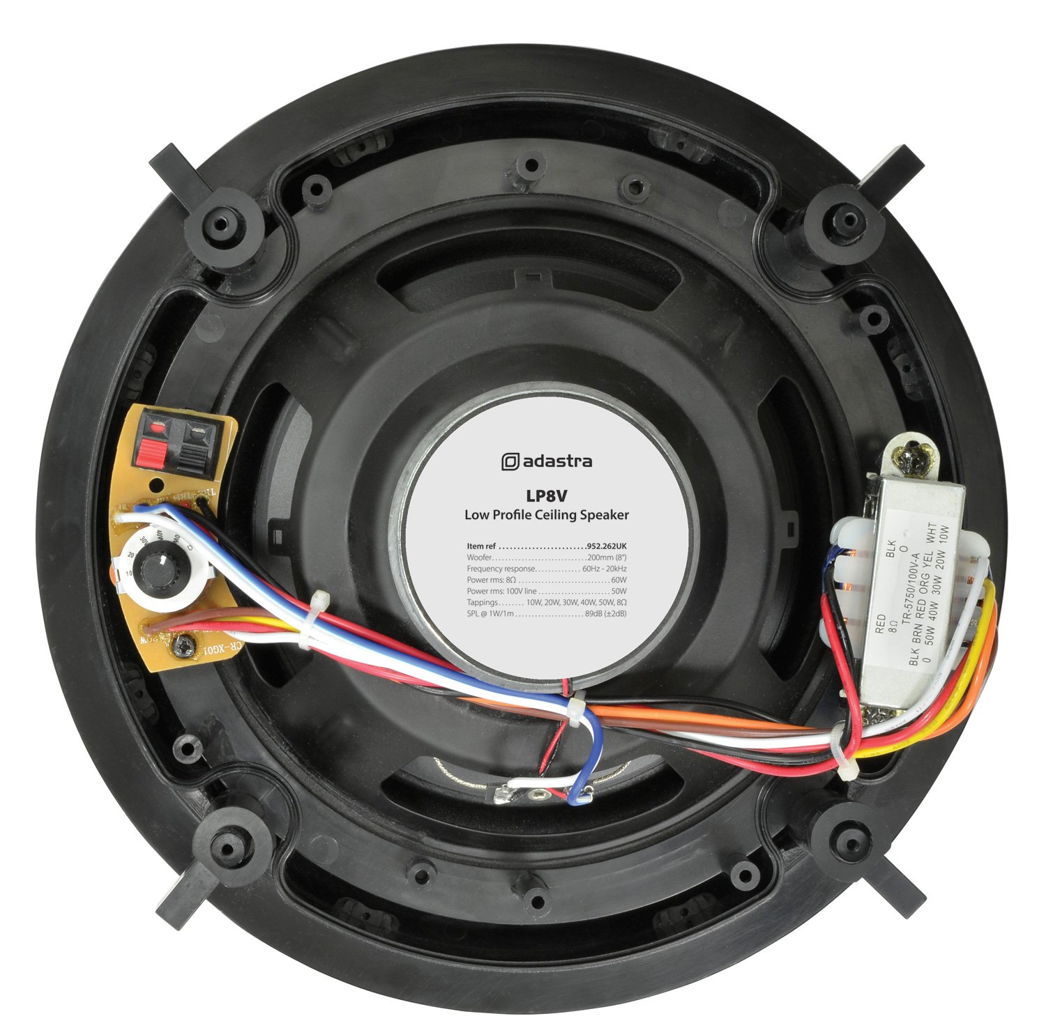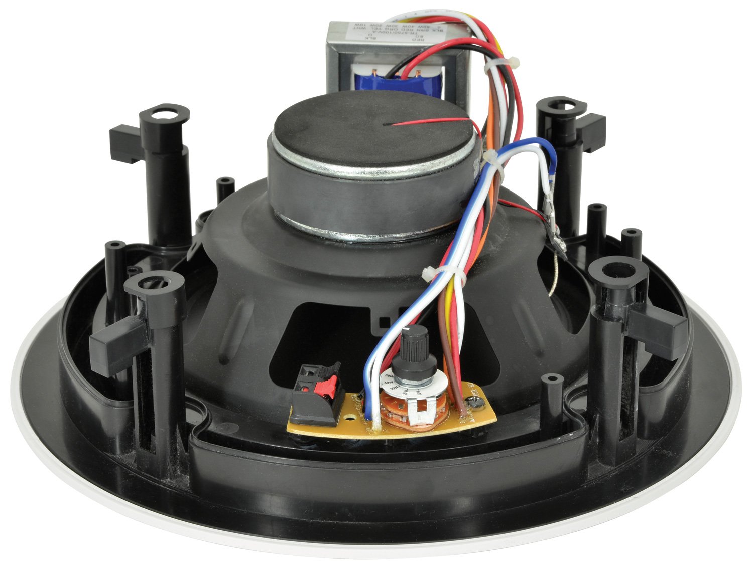 2-way ceiling speakers with flared baffle and a low profile magnetic grille. The main driver with concentric directional tweeter is operated via a rotary control with 5 x 100V volume tappings and an 8 Ohms option. Mount into suspended or false ceilings using the 4 “dog-ear” mounts to achieve a discreet, high quality sound installation.