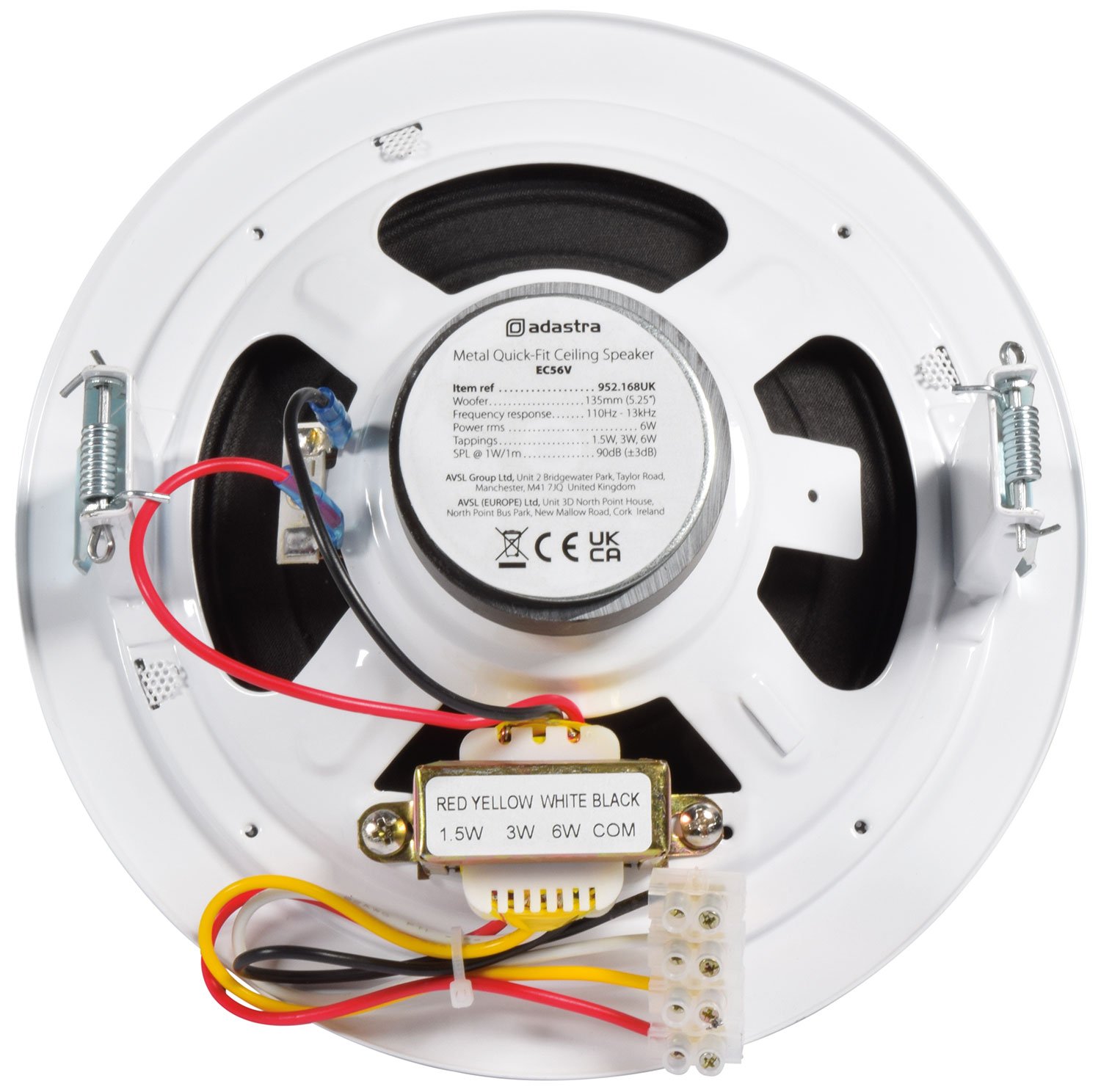 Metal framed ceiling speakers with a quick-fit design, suitable for mounting into almost any material. All metal, flush fit grille fitted with quality speaker and 100V line transformer tapped at 1.5W, 3W and 6W.