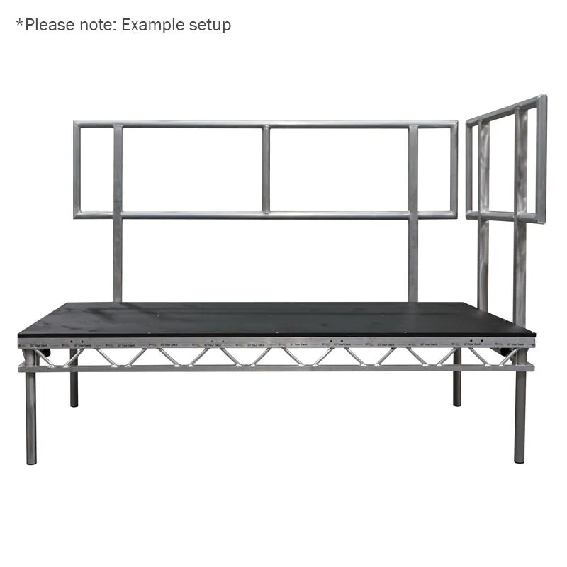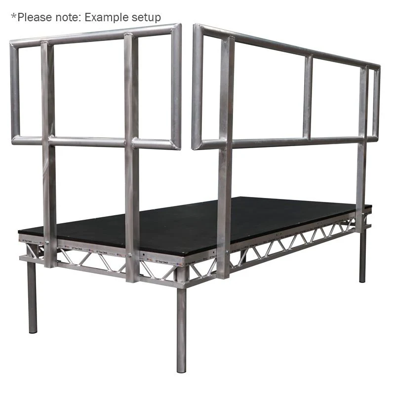This aluminium handrail is designed to bolt directly to the side of the Global Truss Tour Deck platforms. The rugged welded aluminium design complements the Tour Deck’s welded frame and is cross-compatible with similar stage deck systems. The standard open frame design is ideal for general-stage applications without public access.