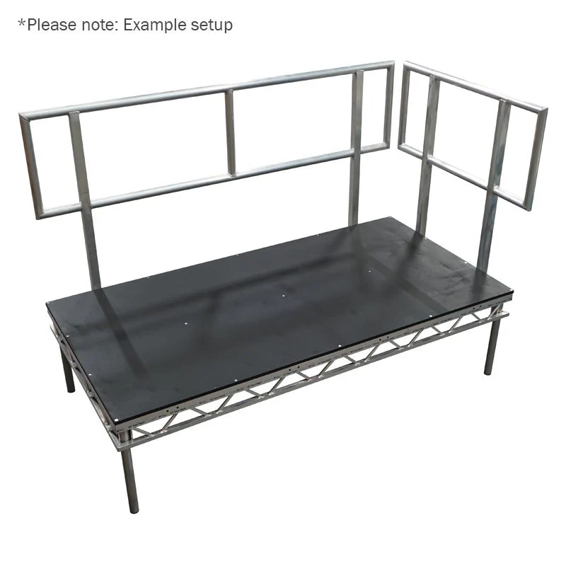 This aluminium handrail has been designed to bolt directly to the side of the Global Truss Tour Deck platforms. The rugged welded aluminium design complements the welded frame of the Tour Deck and is cross-compatible with other similar stage deck systems. The standard open frame design is ideal for general-stage applications where there is no public access.
